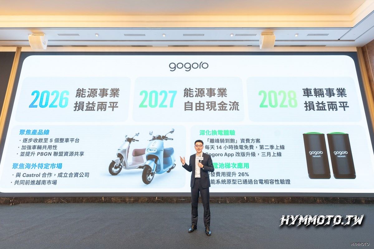 Gogoro 自 2015 年發表第一輛電動機車以來,累積十年努力,成長為台灣第四大車廠,服務近 64 萬名車主,支援超過 60 款電動機車,已建立全球最大的電池交換能源網路。邁入下一個發展階段,Gogoro 揭示在車輛事業與能源事業兩大支柱的關鍵策略,會分別從聚焦產品組合、拓展海外市場、深化換電體驗,以及電池梯次應用等四大面向著手,加速實現可獲利的財務目標。
