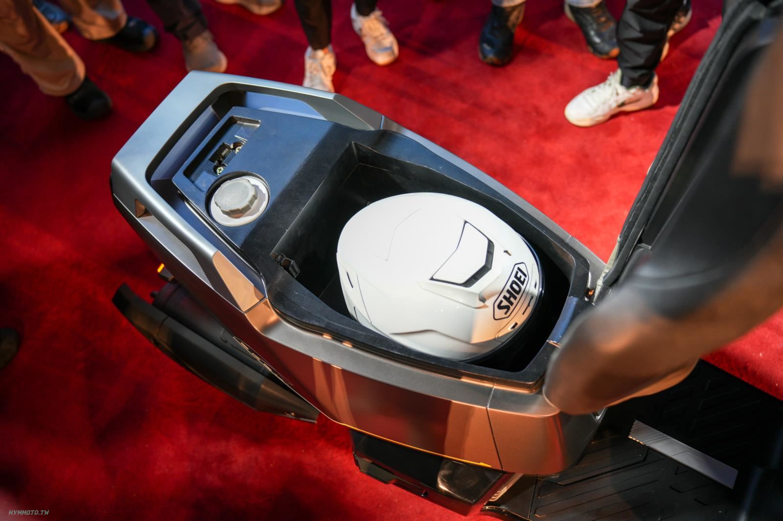 車箱的置物空間可以放入一頂 L 號的 3/4 安全帽,但周邊還能放置的空間就較為侷限。