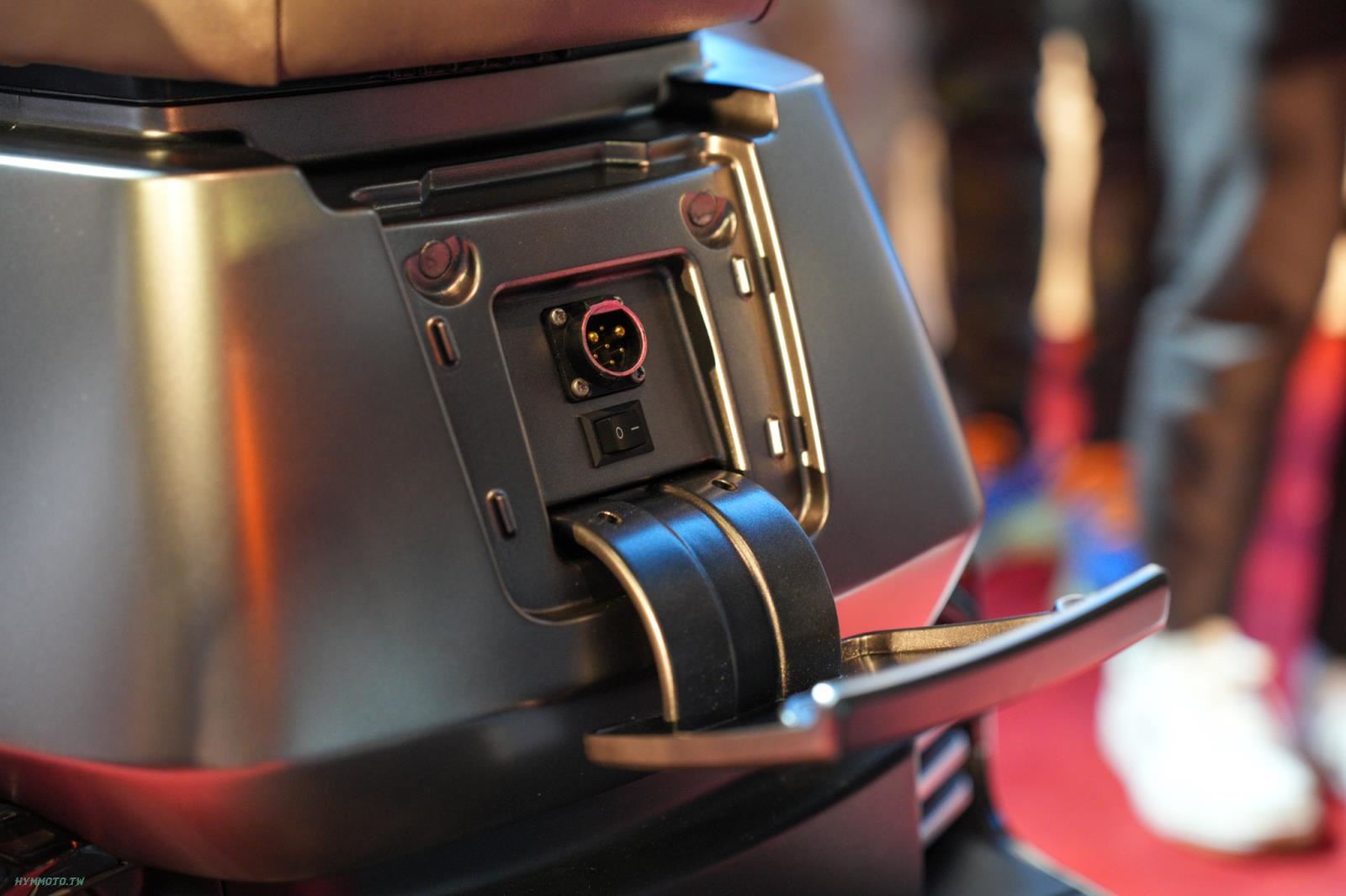 座墊前方胸蓋處則是配置充電孔可以對應家用充電器來使用,後續也會跟中油加油站合作也可在加油站來做充電。