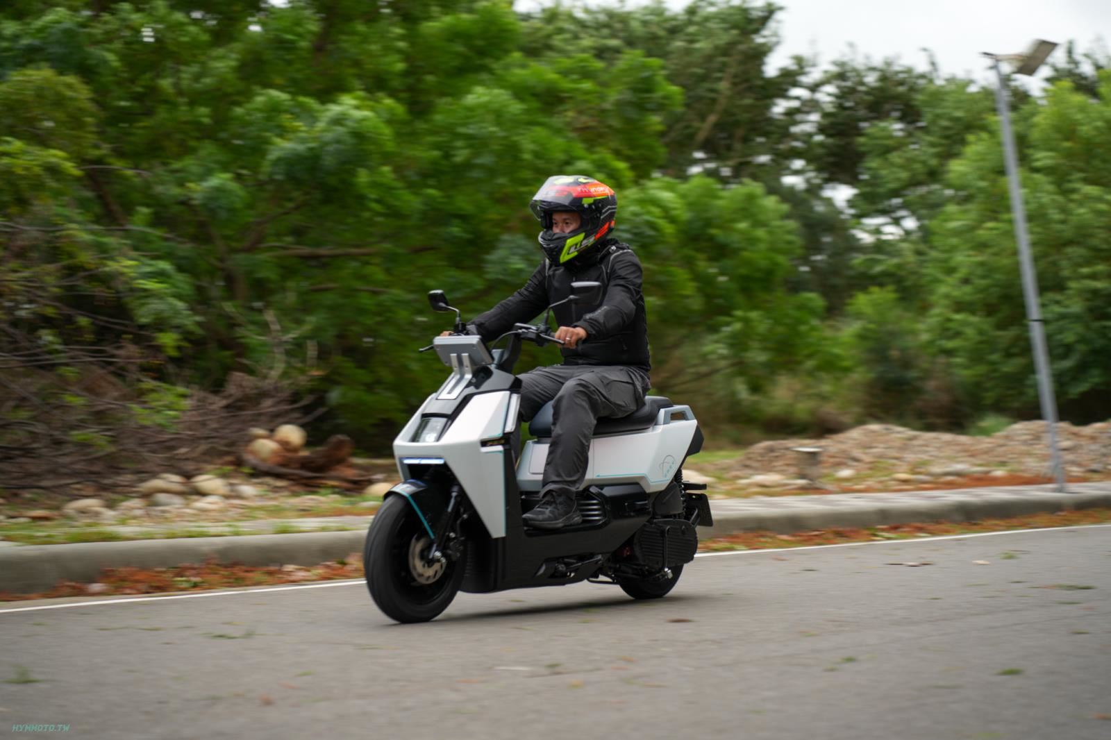 難道 PE3 在概念車的狀況就需要那樣多的改善嗎?其實不然在這次簡短的試乘時間中還是有著不一樣的發現,剛剛說的車重問題確實在牽車跟立中柱時會有影響,但在騎乘上在平路與上坡路段時都能感受到 4kW 馬達所帶來的推力,原以為會受到車重影響會有點無力但卻超乎我的想像般的輕快,雖然沒有白牌電動車的加速推背感但從起步來到50km/h上下的速度也是一氣呵成,此外在減速時也可以自行將動能回收除了產生阻力當作煞車使用之外也能轉換成電能做回充使用。